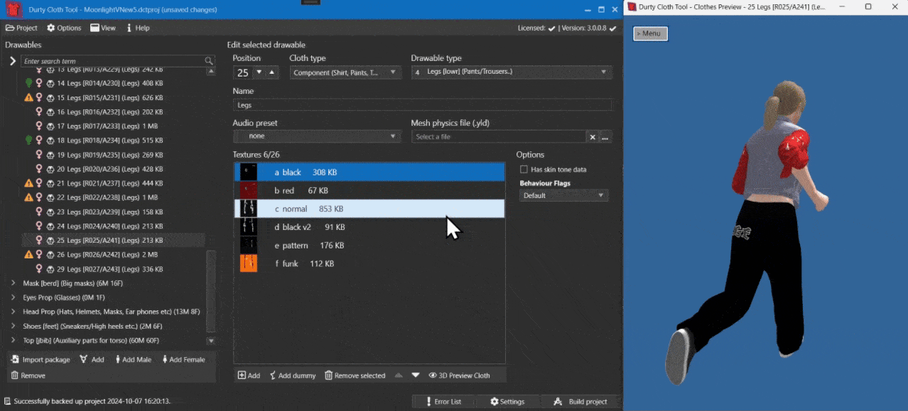 **Durty Cloth Tool** is the best tool available to **easily create & manage your GTA 5 addon cloth & tattoo packs** (for singleplayer, FiveM, alt:V & RageMP) without any knowledge in GTA 5 modding needed.